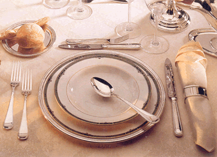 Existen dos sistemas para poner la mesa, el americano y el europeo, la diferencia es que los que usamos el sistema americano, cortamos con la derecha y cambiamos el tenedor de la mano izquierda a la derecha para llevar alimento a la boca, como un zigzag. El sistema europeo consiste en siempre mantener los cubiertos en las manos y nunca se deben soltar, se corta con la derecha y se come con la mano izquierda.